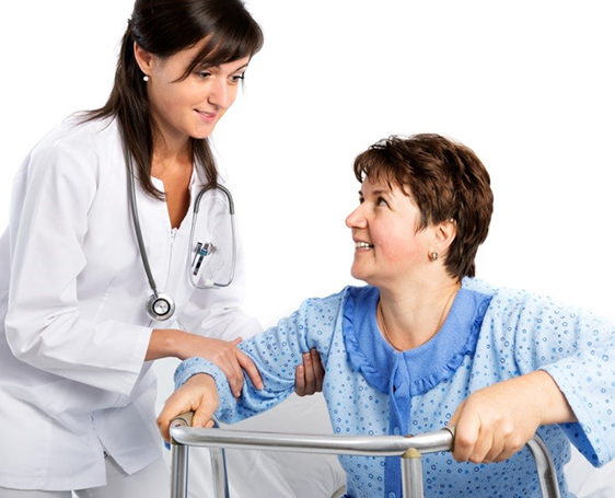 Когда больной сможет подняться, настраивайте его на то, что навыки ходьбы будут возвращаться постепенно. Помогайте больному на этом этапе, поддерживайте его при ходьбе первое время, не оставляйте одного. Следующий этап — ходьба без поддержки, но с опорой. Вначале — стул или трех-четырехножная приставка, манеж, потом — специальная трость. Только после того как вы убедитесь, что больной уверенно ходит в помещении, можно выходить на улицу.