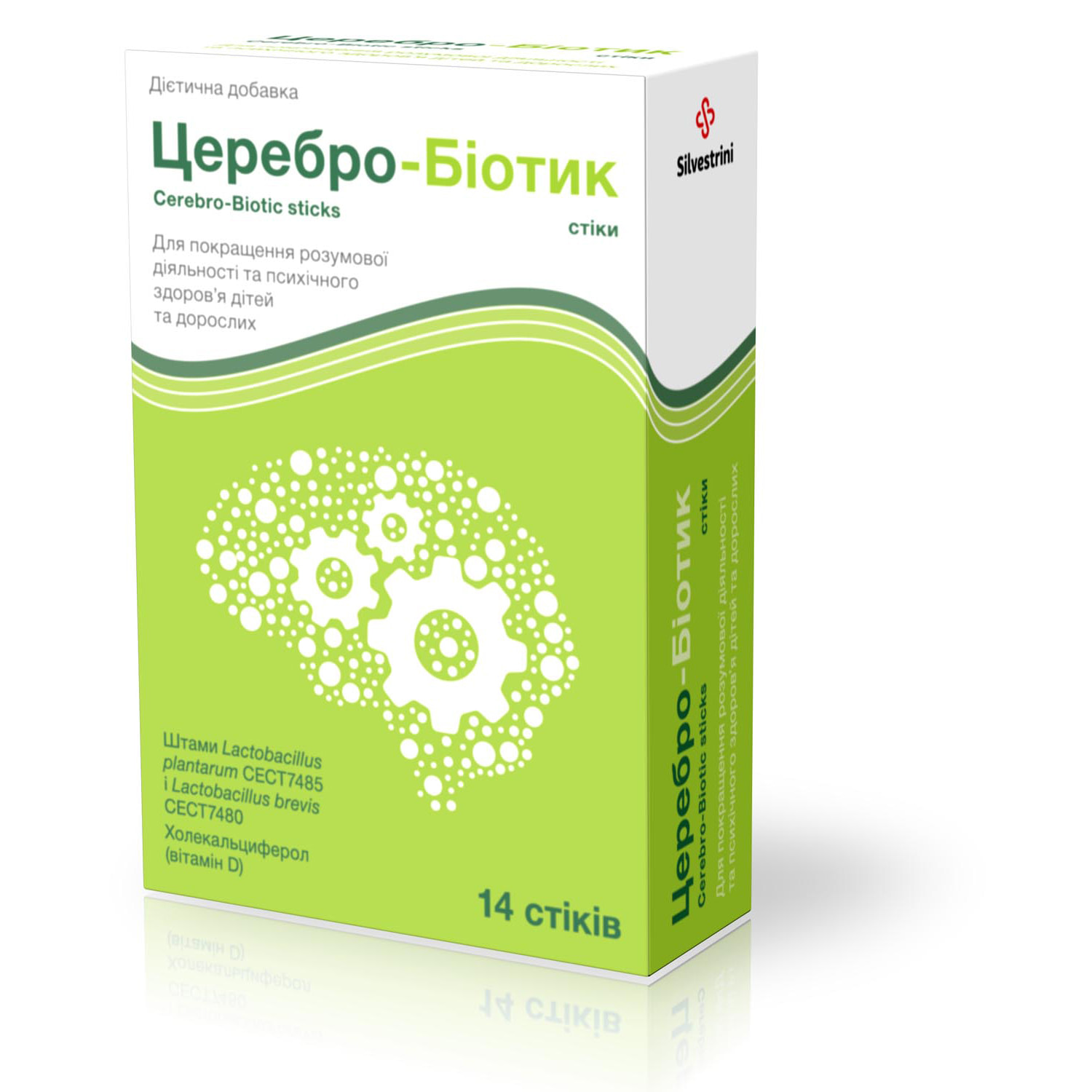 Церебро-біотик стіки/Cerepo-Biotic ssticks є дієтичною добавкою до раціону харчування, як додаткове джерело біологічно активних речовин: вітаміну D та пробіотичних штамів L. plantarum СЕСТ7485 та L. pevis СЕСТ7480.